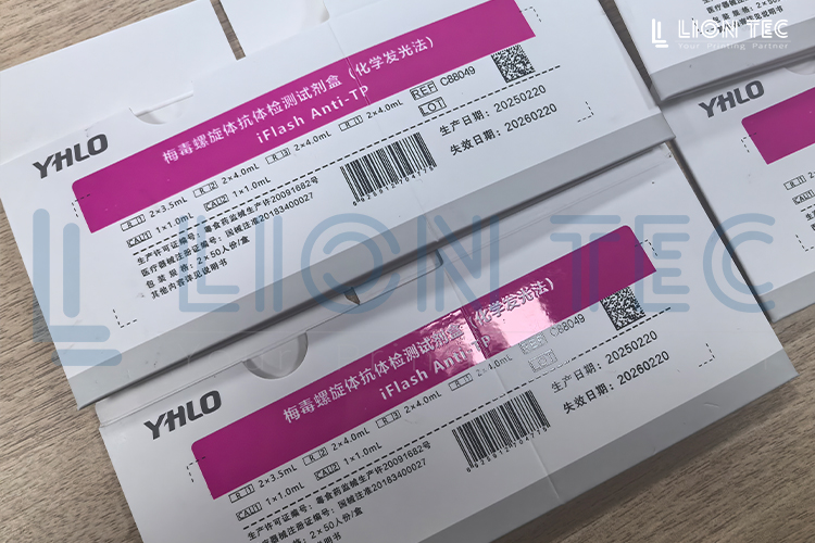 精準標識:噴印試劑盒的名稱、生產日期、批號、二維碼、DM碼等信息,確保標識清晰可讀。
